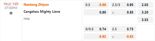 Tỷ lệ kèo Nantong Zhiyun vs Cangzhou