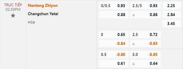 Tỷ lệ kèo Nantong Zhiyun vs Changchun YaTai