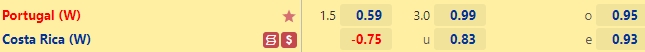 Đáng chú ý, trong 2 trận đấu chấp kèo đối thủ từ 2 1/2 trái đến 2 3/4 trái, Nữ Bồ Đào Nha đều ghi từ 4 đến 5 bàn vào lưới đối thủ. Ở trận đấu với Nữ Costa Rica sắp tới, Nữ Bồ Đào Nha chấp 1 1/2 trái điểm ăn chỉ là 0.59, nên kèo chính chắc chắn sẽ được nâng lên cho thấy khả năng chiến thắng của chủ nhà được đánh giá cao.