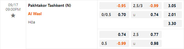 Tỷ lệ kèo Pakhtakor Tashkent vs Al Wasl