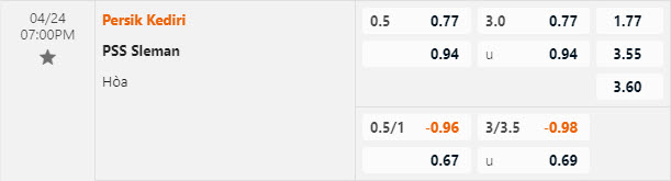 Tỷ lệ kèo Persik Kediri vs PSS Sleman