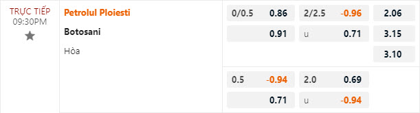 Tỷ lệ kèo Petrolul Ploiesti vs Botosani