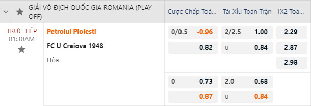 Tỷ lệ kèo Petrolul Ploiesti vs U Craiova