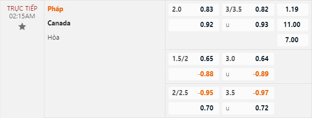 Tỷ lệ kèo Pháp vs Canada