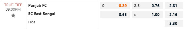 Tỷ lệ kèo Punjab vs East Bengal
