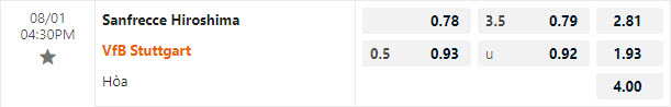 Tỷ lệ kèo Sanfrecce Hiroshima vs Stuttgart