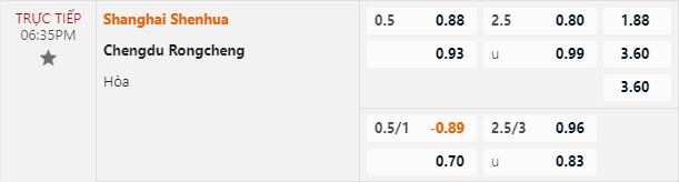 Tỷ lệ kèo Shanghai Shenhua vs Chengdu Rongcheng