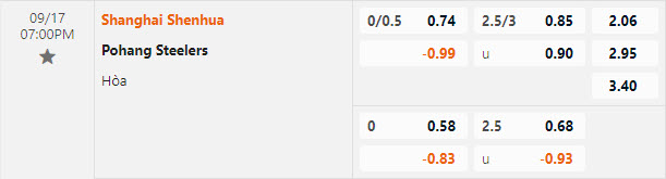 Tỷ lệ kèo Shanghai Shenhua vs Pohang Steelers