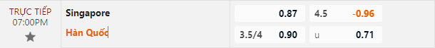 Tỷ lệ kèo Singapore vs Hàn Quốc