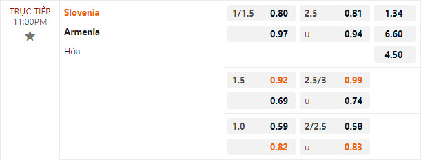 Tỷ lệ kèo Slovenia vs Armenia