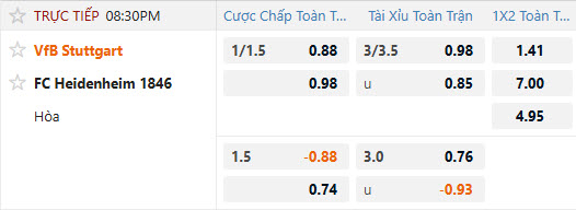 Tỷ lệ kèo Stuttgart vs Heidenheim