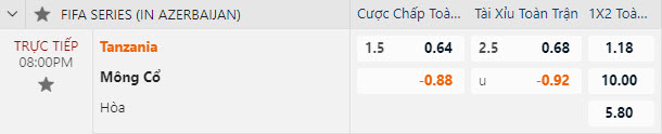Tỷ lệ kèo Tanzania vs Mông Cổ