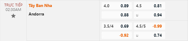 Tỷ lệ kèo Tây Ban Nha vs Andorra