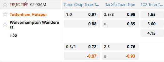 Tỷ lệ kèo Tottenham vs Wolverhampton