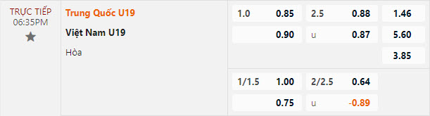 Tỷ lệ kèo U19 Việt Nam vs U19 Trung Quốc