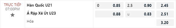 Tỷ lệ kèo U21 Hàn Quốc vs U23 Saudi Arabia