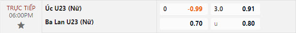 Tỷ lệ kèo U23 nữ Australia vs U23 nữ Ba Lan