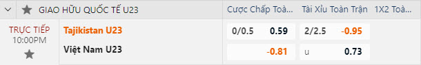 Tỷ lệ kèo U23 Tajikistan vs U23 Việt Nam