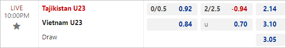 Tỷ lệ kèo U23 Việt Nam vs U23 Tajikistan