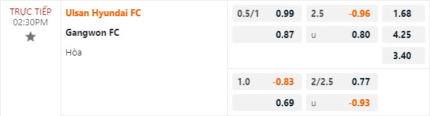 Tỷ lệ kèo Ulsan HD FC vs Gangwon FC