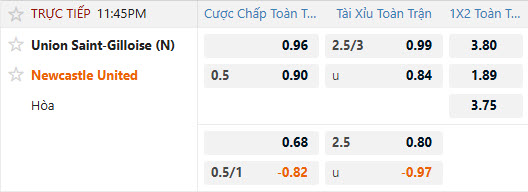 Tỷ lệ kèo Union Saint-Gilloise vs Newcastle