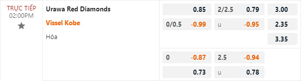 Tỷ lệ kèo Urawa Red Diamonds vs Vissel Kobe