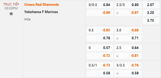 Tỷ lệ kèo Urawa Red Diamonds vs Yokohama F Marinos