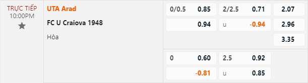 Tỷ lệ kèo UTA Arad vs U Craiova