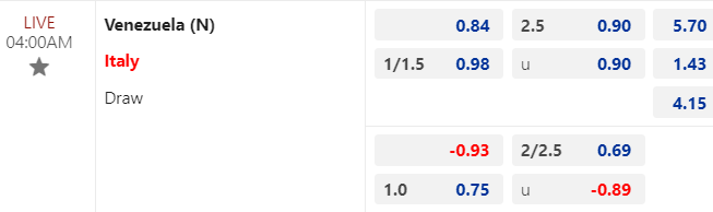 Tỷ lệ kèo Venezuela vs Italia