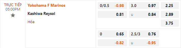 Tỷ lệ kèo Yokohama F Marinos vs Kashiwa Reysol