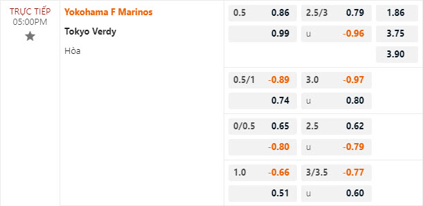 Tỷ lệ kèo Yokohama Marinos vs Tokyo Verdy