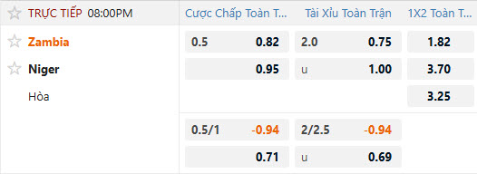 Hàng công của Zambia đang chơi tệ khi 7/8 trận gần nhất của đội bóng này không ghi nhiều quá 1 bàn mỗi trận. Điều này cũng diễn ra ở 8/9 trận gần đây của Niger. Do vậy có thể kèo Xỉu sẽ là một chọn lựa không tồi cho nhà đầu tư trận này.