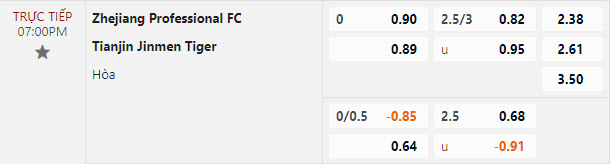 Tỷ lệ kèo Zhejiang Professional vs Tianjin Jinmen Tiger
