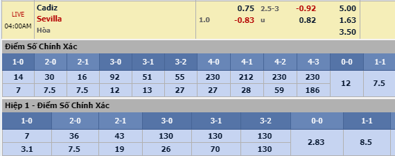 Một chi tiết khác để nghi ngờ khả năng giành chiến thắng của đội bóng đến từ xứ Andalucia khi đối thủ của họ là Cadiz đang có sự tiến bộ rất đáng khen ở thời điểm hiện tại. Đội chủ nhà đang tranh đấu tại giải Hạng 2 Tây Ban Nha với phong độ đáng nể khi leo lên đứng thứ 2 với cơ hội trở lại La Liga đã nằm trong tầm tay. Trên phương diện tỷ lệ châu Á, Cadiz thực sự là địa chỉ đáng tin cậy cho giới mộ điệu khi liên tiếp vượt kèo tới 10 trận gần nhất.