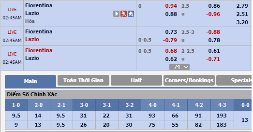 Tổng bàn thắng cả trận: Fiorentina lúc này đã trở nên thực dụng hơn, tính toán hiệu quả hơn để có kết quả tối ưu. Đội chủ nhà vừa liên tiếp giữ sạch lưới cả 4 vòng gần nhất nhưng đều không ghi quá 2 bàn là minh chứng rõ ràng nhất. Tính ra, có tới 8/9 trận gần đây của đội chủ nhà đều khép lại với tối đa 2 tình huống lập công. Trong khi đó, Lazio đang trong thời điểm sa sút khá nặng nề nên rất khó chờ đợi vào kịch bản tưng bừng bàn thắng.