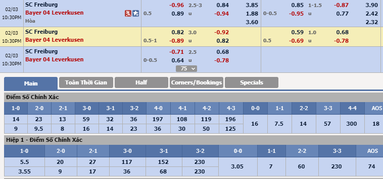 Trên thực tế, các nhà cái châu Á đang niêm yết kèo chính với mốc Leverkusen chấp 1/2 cũng là điều dễ hiểu. Thậm chí đây là tỷ lệ mà giới điều khiển thị trường dành đáng kể sự tôn trọng với Freiburg bởi đó là mức thấp nhất trong 4 lần đụng độ trên sân nhà gần đây giữa hai đội. Hơn nữa, việc liên tiếp 4 mùa giải gần đây đều bất bại khi tiếp đón Leverkusen cũng là chi tiết đáng để hy vọng vào Freiburg ở trận đấu này.