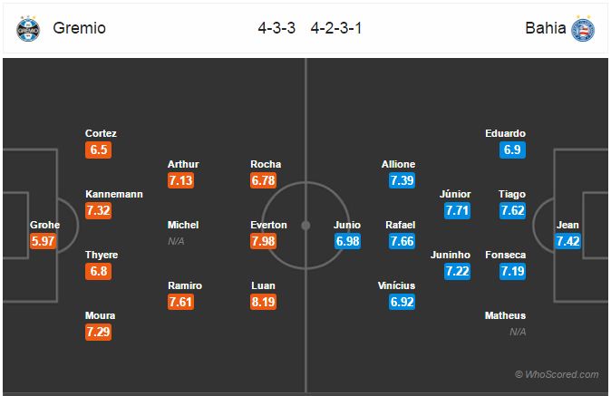 Trong khi đó, dù mới chỉ trở lại giải VĐQG Brazil sau 2 năm phải chơi ở giải Hạng 2, nhưng Bahia đã thể hiện được khá nhiều sau 5 vòng đấu đầu tiên, họ đã có được 9 điểm và đang tạm đứng thứ 8 trên BXH. Tuy nhiên, việc phải làm khách đến sân của Gremio thực sự là thử thách vô cùng khó khăn cho Bahia, nên nhớ, 3 chiến thắng Bahia có được từ đầu mùa đều trên sân nhà, còn 2 thất bại đều trên sân khách.
