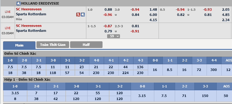 Tổng bàn thắng cả trận: Cả 2 đội đều gặp những vấn đề rất nan giải ở hàng hậu vệ. Họ nằm trong danh sách những cái tên chơi tệ hại nhất về khả năng phòng ngự, Sparta Rotterdam để thủng lưới 41 bàn, trong khi Heerenveen đã 31 lần bị chọc thủng lưới. Với đặc điểm như vậy, các nhà cá niêm yết kèo cho khả năng cởi mở lên đến 3 hòa dù đây là cuộc gặp gỡ giữa 2 đội ít tên tuổi tại Hà Lan. Chọn Trên 3 bàn cả trận.
