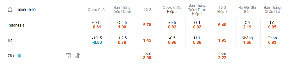Theo đánh giá của nhà cái châu Á hiện nay, Australia đang được niêm yết với kèo chấp 3/4 cùng biên độ lợi nhuận cân bằng giữa các lựa chọn đối lập. Đội khách được xếp cửa trên là điều dễ hiểu khi họ có thứ hạng cao hơn đáng kể ở BXH FIFA, liên tiếp vượt qua vòng loại World Cup để góp mặt tại sân chơi danh giá nhất thế giới. Nhưng nếu nhìn lại quá khứ, Indonesia đã có vị thế cao hơn đáng kể khi lần gần nhất tiếp đón đối thủ trên sân nhà còn bị đẩy xuống chiếu dưới với kèo được chấp tới 1 1/2. Rõ ràng, có lý do để hy vọng vào khả năng có điểm của đại diện Đông Nam Á khi bước vào trận đấu này.
