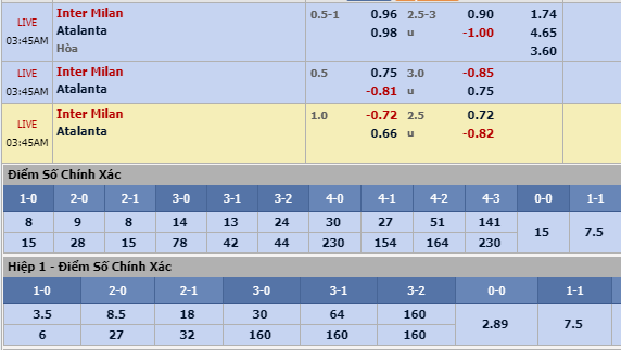 HIệp 1: Inter Milan đang tỏ ra là đội bóng rất giỏi trong việc sớm tìm đường vào khung thành đối thủ. Bằng chứng là 4/6 vòng đấu trở lại đây, Icardi cùng các đồng đội ghi bàn ngay hiệp 1. Phía đội khách Atalanta, có tới 3 trong 4 trận sân khách gần nhất, họ phải nhận bàn thua trong khoảng thời gian 45 phút đầu tiên.