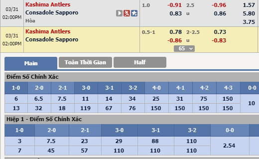 Có một chi tiết cần truyền tải ngay lập tức khi Kashima Antlers toàn thắng tất cả các trận đối đầu sân nhà từ trước đến nay. Sự vượt trội của họ thậm chí còn thể hiện qua việc đều giữ sạch lưới khi tiếp đón Sapporo và tất nhiên vượt kèo châu Á một cách xuất sắc. Chi tiết này cho thấy Kashima Antlers luôn dễ chơi trong các lần đụng độ giữa 2 đội.