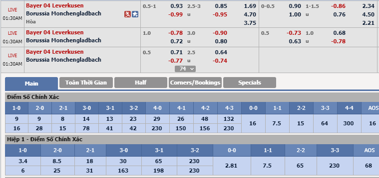 Phạt góc: Mức tổng phạt góc dừng lại với tham số 9 1/2 thực tế không phải tham số thấp so với mặt bằng chung tại Bundesliga. Thậm chí nó còn là đánh giá tích cực từ nhà cái về khả năng diễn ra bùng nổ các quả đá phạt từ 4 cột cờ góc. Thực tế, cả Leverkusen và M'Gladbach đều thuộc top những đội được hưởng phạt góc cao từ đầu mùa. Đội chủ nhà trung bình mỗi trận có 5.28 quả, trong khi đội khách tròn 5 quả. Chọn Trên 9 1/2 phạt góc cả trận.