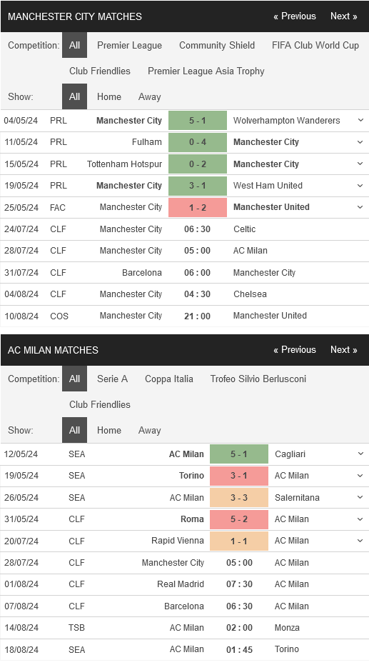 Soi kèo Giao hữu Man City vs AC Milan