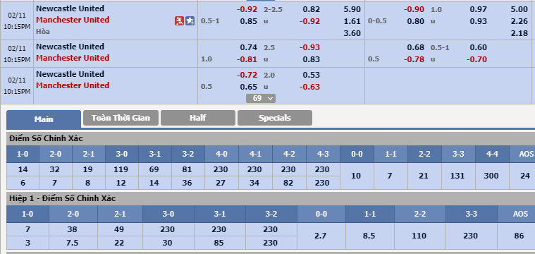Hiệp 1: Với sức mạnh vượt trội cùng một phong độ quá chênh lệch, MU chắc chắn sẽ là đội bóng sớm giành được thế trận ở kèo đấu này. Tuy nhiên, có vẻ như khả năng Quỷ Đỏ vươn lên trong hiệp 1 là không cao. Bởi lẽ, trong 7 trận gần nhất chỉ có đúng 1 lần MU làm được điều này trong hiệp đấu đầu tiên. Ngược lại, Newcastle cũng chỉ 2 lần chịu thất thế về tỷ số trong hiệp 1 tính trên cùng số trận. Theo đó, dựa vào mức chấp -1/4 mà nhà cái đưa ra với MU, Newcastle sẽ là cửa cược hợp lý cho kèo đấu này.