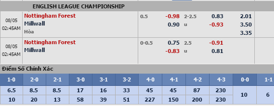 Một lý do khác để tin tưởng vào Nottingham khi đối thủ của họ hôm nay chỉ là Millwall vừa mới thăng hạng từ League One. Đội khách có thể chơi tốt ở mùa giải năm ngoái tại giải hạng thấp hơn nhưng Championship là sân chơi khắc nghiệt hơn nhiều. Quá trình chuẩn bị của đội khách trước khi bước vào môi trường mới cũng đáng lo ngại khi họ chỉ biết đến hòa và thua tới 4 trong 5 trận dù chỉ gặp những đội bóng quân xanh thực sự.