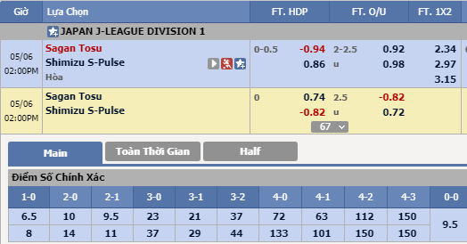 Chính những yếu tố nói trên đã khiến nhà cái có cái nhìn rất tích cực với Sagan Tosu khi niêm yết kèo chấp 1/4 ngay từ thời điểm đầu xuất hiện trên sàn giao dịch. Trong hoàn cảnh bết bát như vậy, đội chủ nhà vẫn ở thế cửa trên rõ ràng là điều đáng mừng. Thực tế, Sagan Tosu rất có duyên trong các trận đối đầu gần đây khi bất bại cả 7 trận, trong đó có 3 chiến thắng.