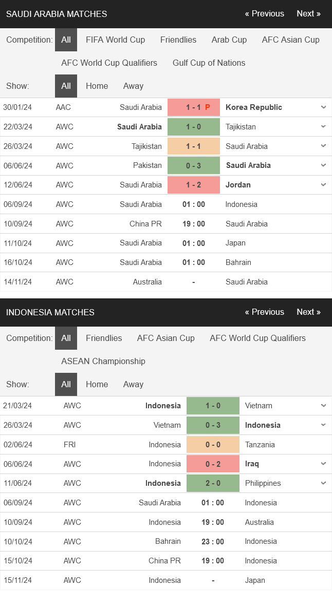 Dự đoán tỷ số bóng đá AEGOAL: Saudi Arabia 2-0 Indonesia