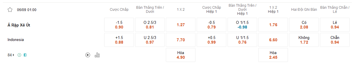 Nhiệm vụ chính dành cho Indonesia khi bước vào trận đấu này là cố gắng chơi chắc chắn bên phần sân nhà trước khi nghĩ đến các đợt tấn công. Bởi việc đua sức với Saudi Arabia không phải phương án mang lại nhiều hy vọng. Kèo tài xỉu châu Á lúc này vì thế chỉ dừng lại với tỷ lệ 3 hòa cùng điểm ăn bỏ rất sâu trên sàn giao dịch cũng là đánh giá thấp cho diễn biến ăn miếng trả miếng.
