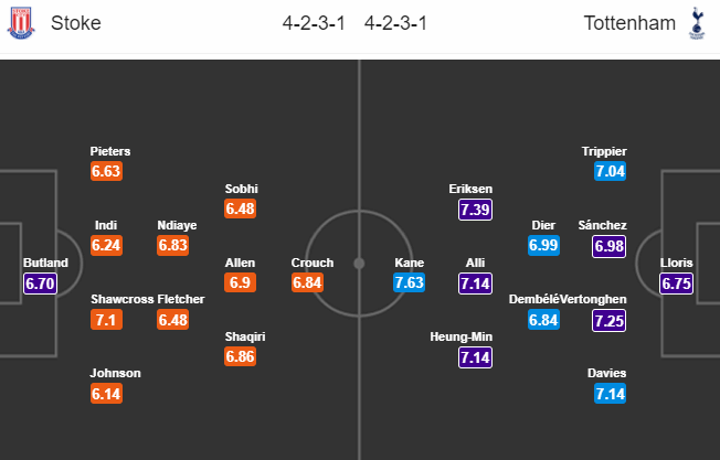 Trong tình thế thiếu thốn và bệ rạc như vậy, một kết quả bất ngờ trước Tottenham là điều bất khả thi. Thành tích đối đầu cho thấy Stoke luôn là đối thủ ưa thích cho những chú Gà trống với cả 4 thất bại liên tiếp gần đây và đều bị thủng lưới ít nhất 4 bàn. Hơn nữa, đại diện đến từ London đang cho thấy họ thực sự là tập thể đáng gờm vào giai đoạn nước rút với liên tiếp 5 vòng toàn thắng và có tới 4 trận ghi được tối thiểu 2 bàn.