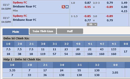 Tất nhiên, nhìn vào các con số thống kê cho thấy Sydney FC là lựa chọn có nhiều điểm tựa hơn. Tuy nhiên, các nhà cái lúc này chỉ niêm yết mức kèo chủ nhà chấp 1 hòa, ngang bằng với kèo ở trận tiếp đón Brisbane Roar gần nhất. Đó là dấu hiệu rủi ro đáng kể mà nhà cái có những tính toán cực kỳ chi tiết với nhiều dữ liệu quan trọng mà họ đang có. Trên thực tế, Sydney FC khó co tình trạng thể lực ở mức tốt nhất.